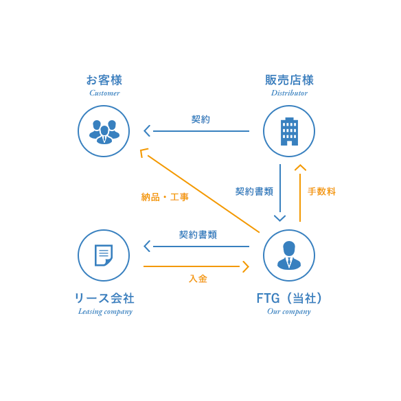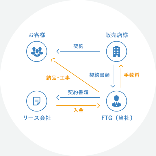 フランチャイズ契約、委託店契約、商品売買契約の中から何れかの契約を交わし当社取扱商品を販売いただく制度です。充実した研修制度によって商品情報はもちろん、営業ノウハウを共有いたします。早期の事業立ち上げが可能となります。